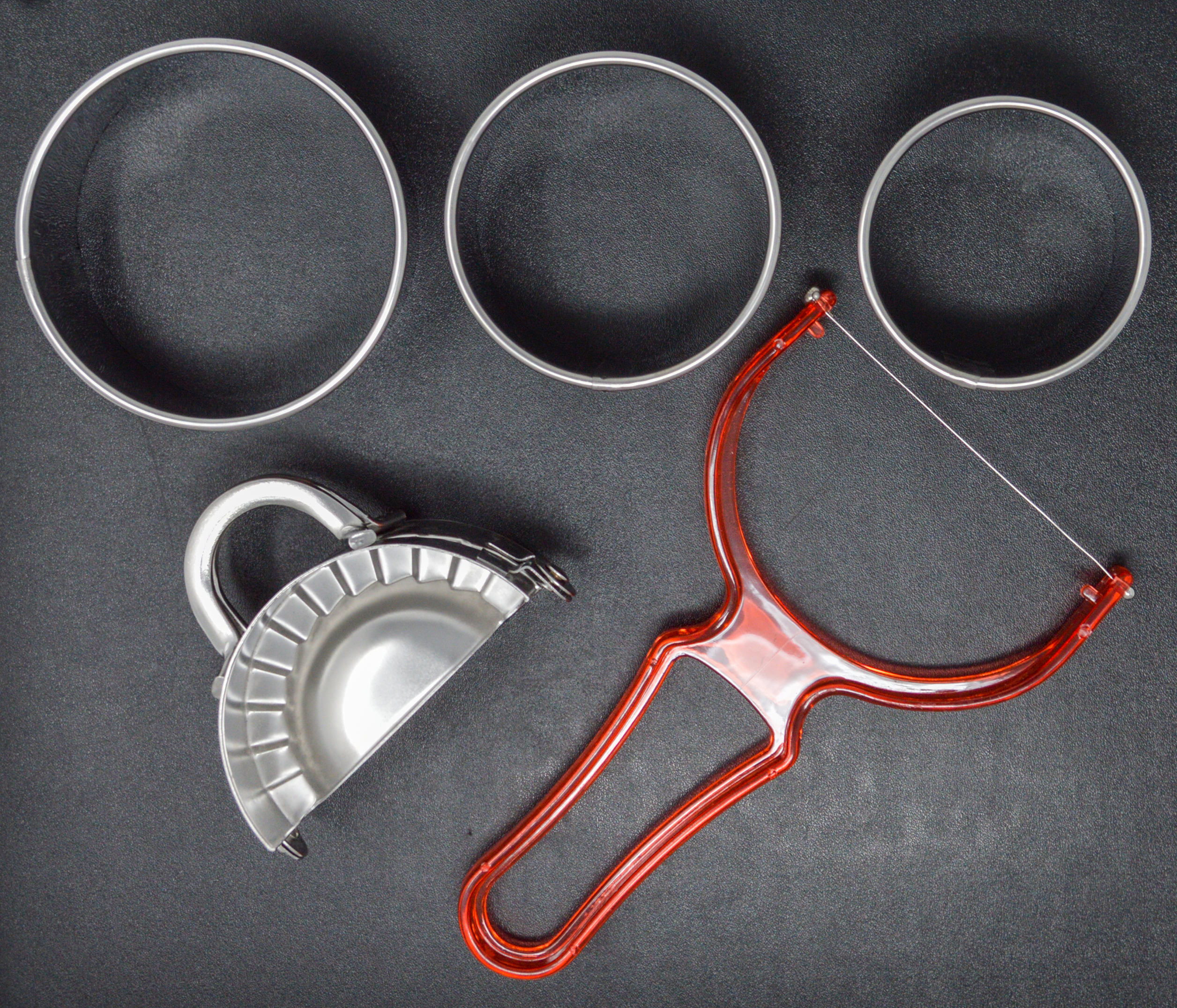 Confezione Accessori per Pasta con 1 Tagliapasta 1 kit ravioli acciaio e 3 coppapasta per Macchine della Pasta Sirge