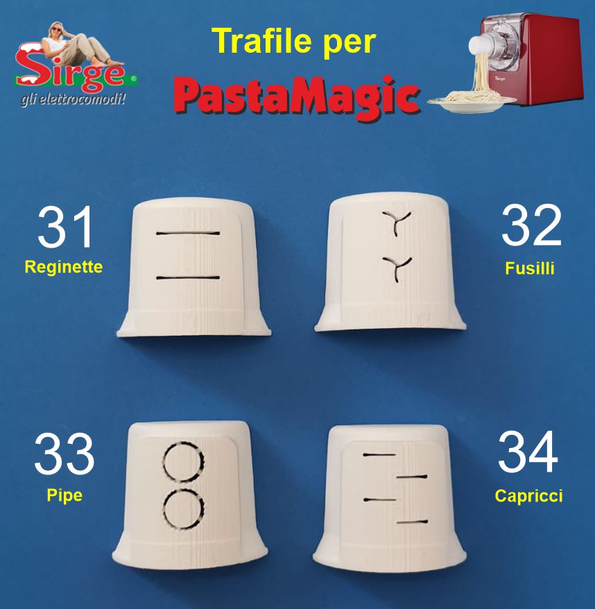 Confezione Trafile 31-32-33-34 Fusilli Reginette Capricci Pipe per PastaMagic Sirge